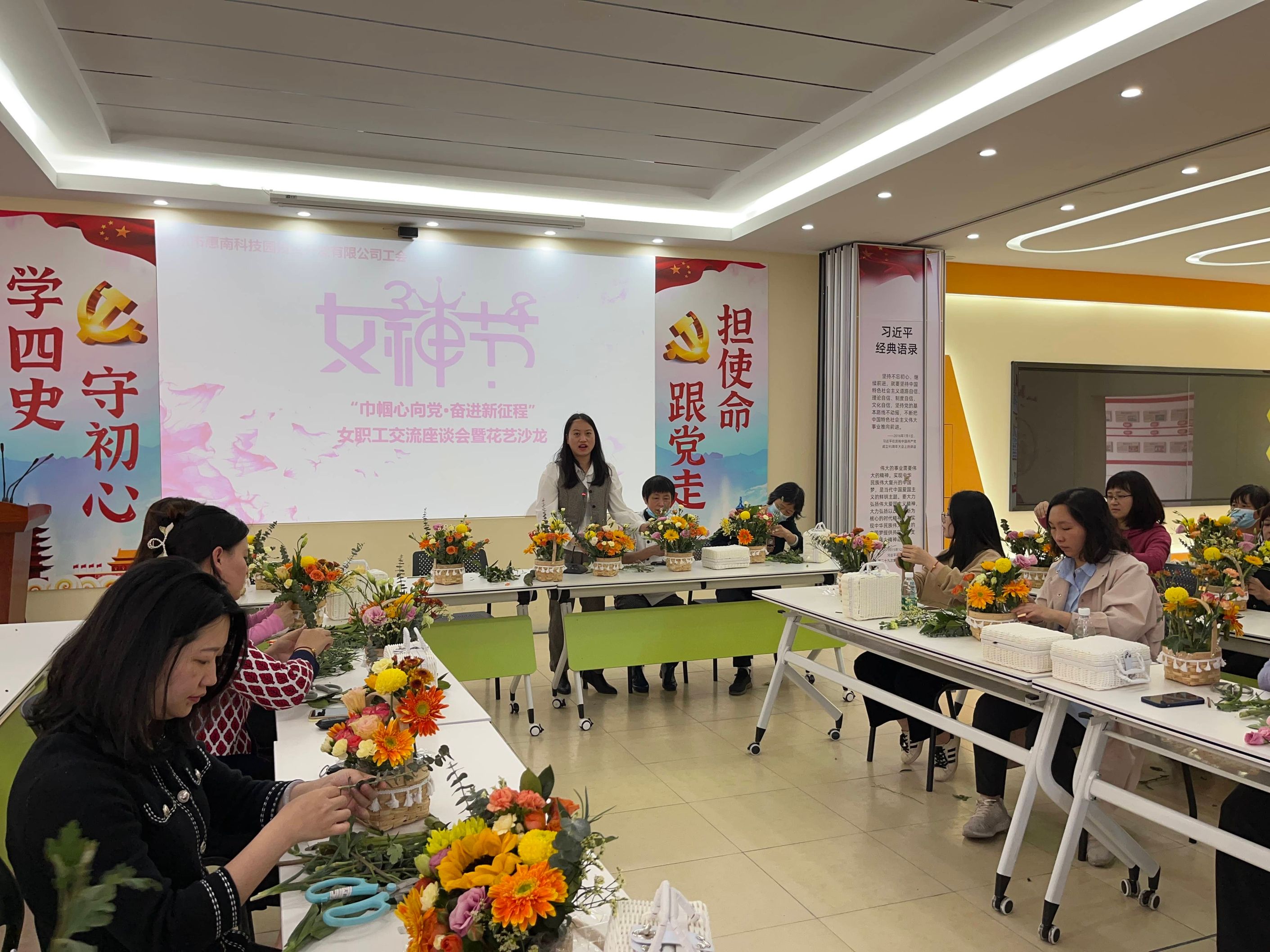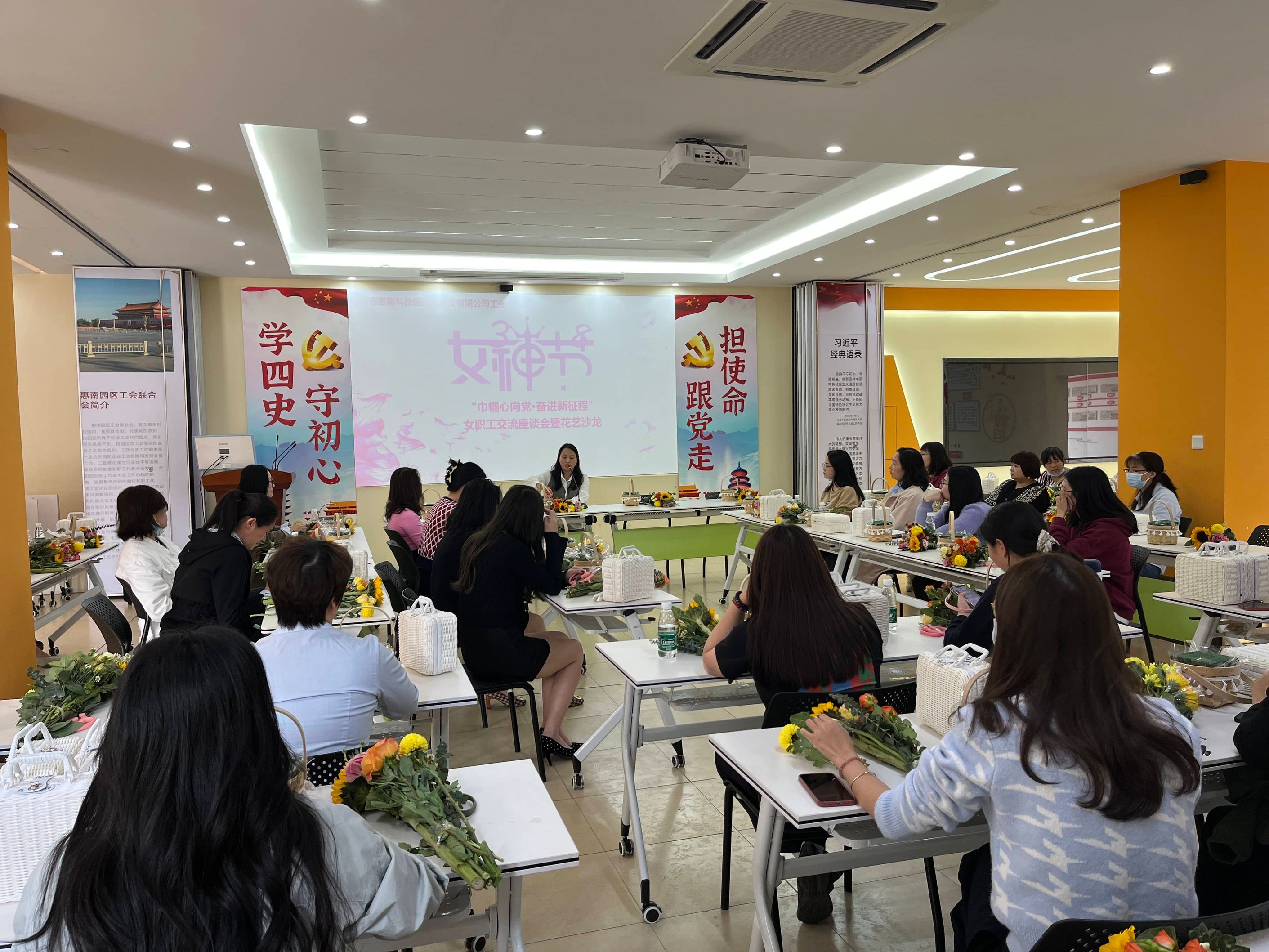 為營(yíng)造三八國(guó)際勞動(dòng)?jì)D女節(jié)活動(dòng)氛圍,豐富女職工的業(yè)余生活,提高女職工陶冶身心生活藝術(shù)。3月7日下午,投開公司工會(huì)在惠南黨群服務(wù)中心舉辦“巾幗心向黨·奮進(jìn)新征程”主題座談會(huì)暨花藝沙龍。惠南投開公司工會(huì)會(huì)員40余人參加活動(dòng)。