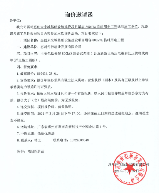 惠創(chuàng)未來城基礎設施建設項目增容800kVA臨時用電工程