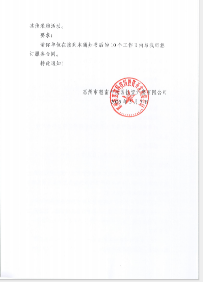 【中標(biāo)通知】惠南科技園道路衛(wèi)生保潔及垃圾清運(yùn)項(xiàng)目招標(biāo)代理服務(wù)事項(xiàng)
