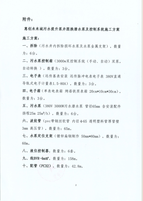 【報(bào)價(jià)邀請(qǐng)函】惠創(chuàng)未來(lái)城提升泵井采購(gòu)更換潛水泵及控制系統(tǒng)項(xiàng)目
