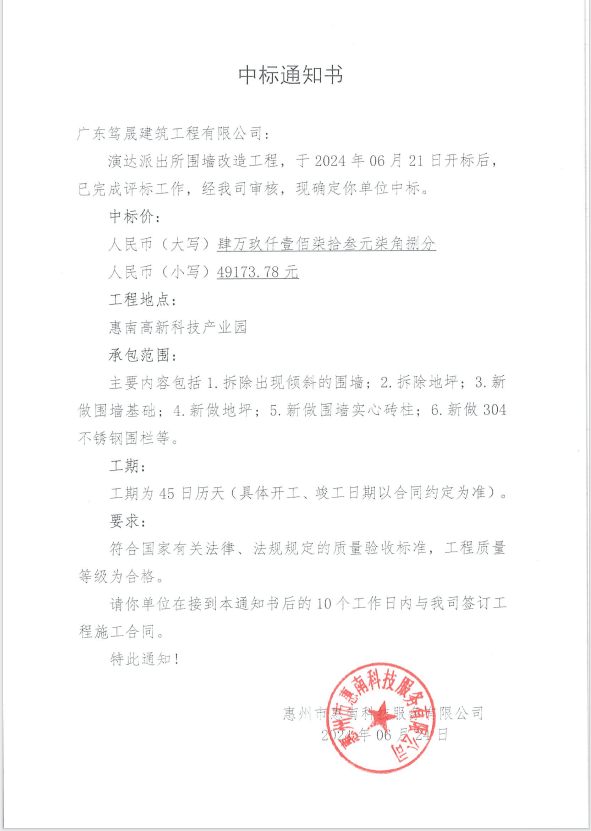 【中標(biāo)通知】演達(dá)派出所圍墻改造工程