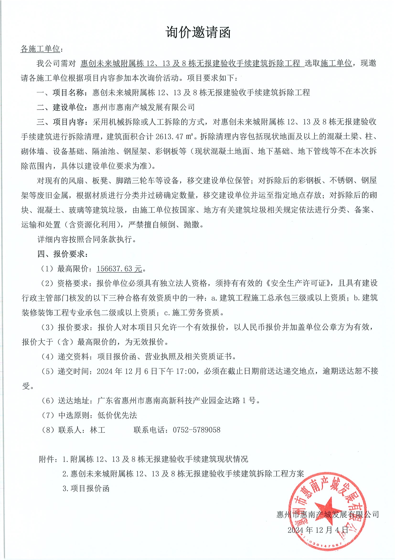 附件2:惠創(chuàng)未來城附屬棟12、13及8棟無報建驗收手續(xù)建筑拆除工程方案.pdf