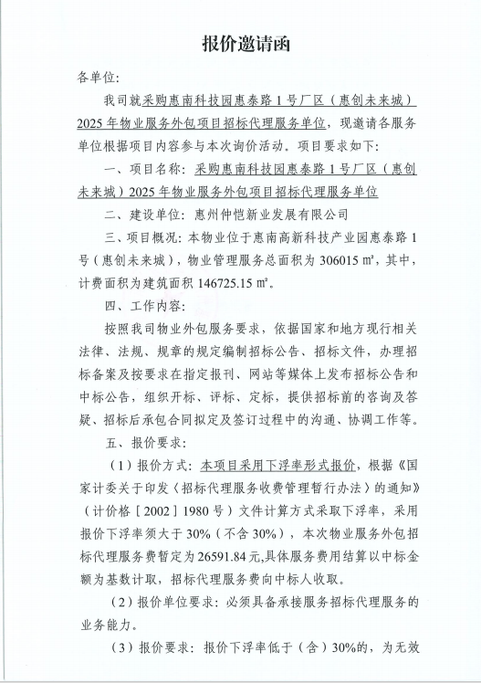 采購(gòu)惠南科技園惠泰路1號(hào)廠區(qū)(惠創(chuàng)未來(lái)城) 2025年物業(yè)服務(wù)外包項(xiàng)目招標(biāo)代理服務(wù)單位