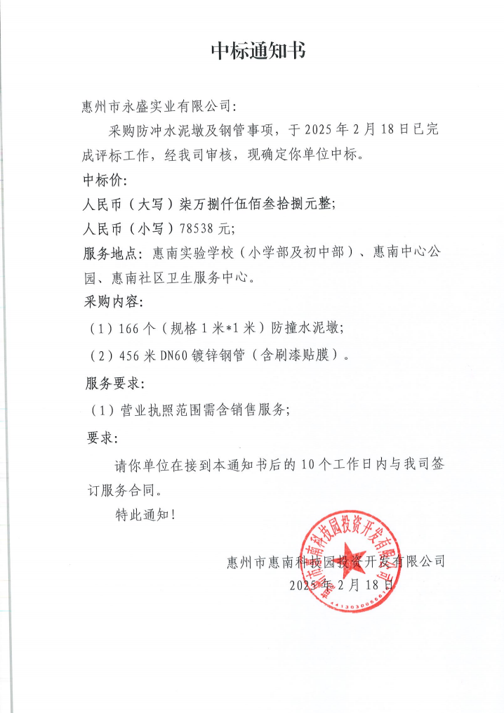 【中標(biāo)通知】采購(gòu)防沖水泥墩及鋼管事項(xiàng)